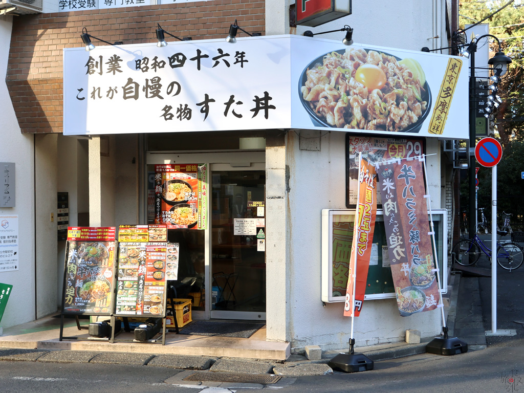 西東京の油そばの回でもご紹介したように、東京のJR中央線沿線は大学が多く、学生街には若者向けの安くてボリュームのあるメニューが多い。油そばの「三幸」と同じ、国立で発祥し、その後チェーン店化とともに全国に広がったメニューにすた丼がある。にんにくを効かせた豚肉を使った、いわゆる「スタミナ丼」だ。