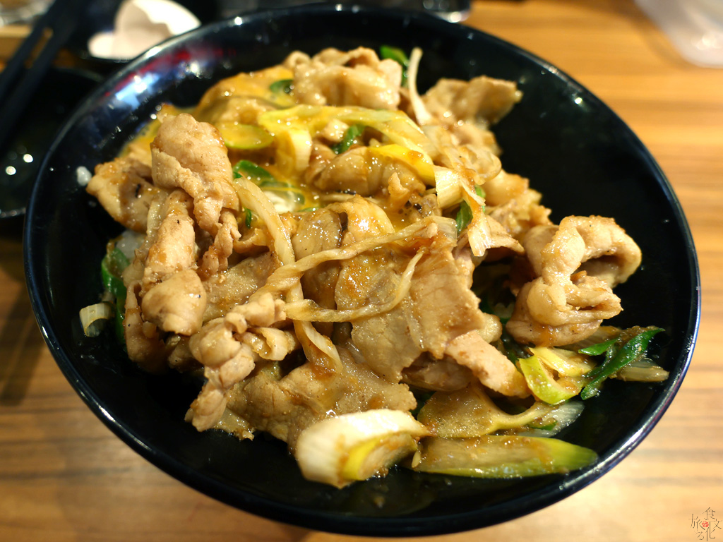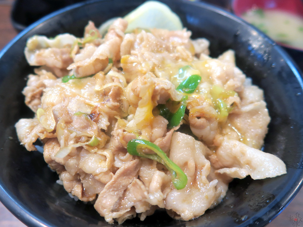 調理は手早い。あっという間にすた丼が配膳されてきた。一見してご飯の量が非常に多い。普通盛りだが、明らかに丼いっぱいにご飯が盛られ、その上に肉が山となってのっている。以前普通盛りを食べた際、あまりのご飯の多さに肉とのバランスの悪さを感じたため、今回は肉増しで注文した。腹には堪えるが、肉とご飯のバランスは正解だった。