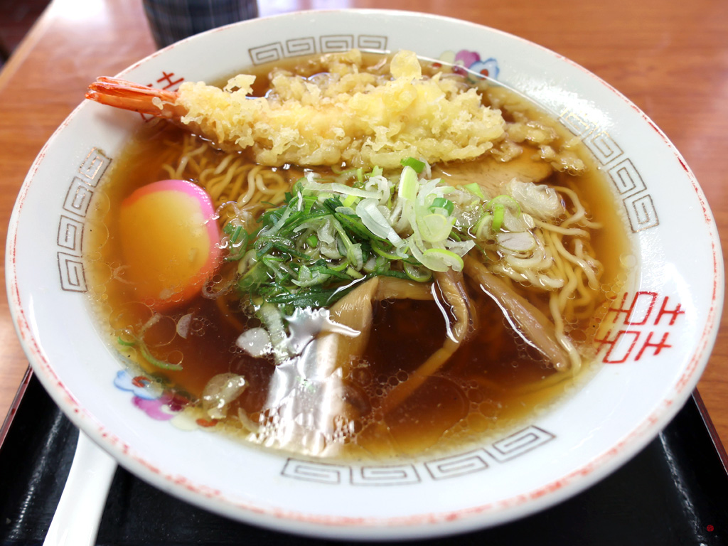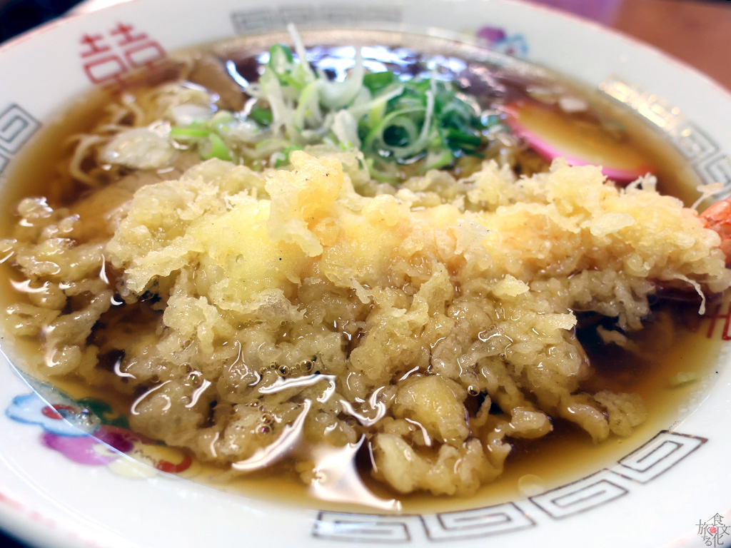 お次は、天ぷら中華だ。天ぷらそばや天ぷらうどん、さらにはラーメンも全国どこにでもあるメニューだろう。しかし、ラーメンに天ぷらがのるケースは、愛媛県西条市などごく一部の地域に限られる。その一つが岐阜市なのだ。特徴は、非常にあっさりした和風のラーメンに天ぷらが載っているという点だ。