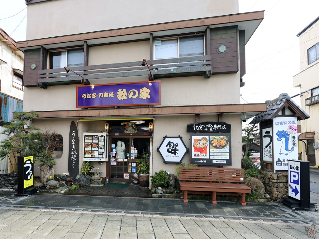 まず最初に訪れたのは、舘山寺に向かうバス停を降りて舘山寺まで延びる参道の手前に位置する「松の家」だ。好立地とともに、人気テレビ番組「孤独のグルメ」で紹介された店ということで非常に人気が高い。午前10時半の開店を前に、店頭に置かれた順番表に名前を記入して隣の待合場所で待っていたのだが、10時半まで待っていたら、危うく席を確保できないところだった。それほどの人気ぶりだ。